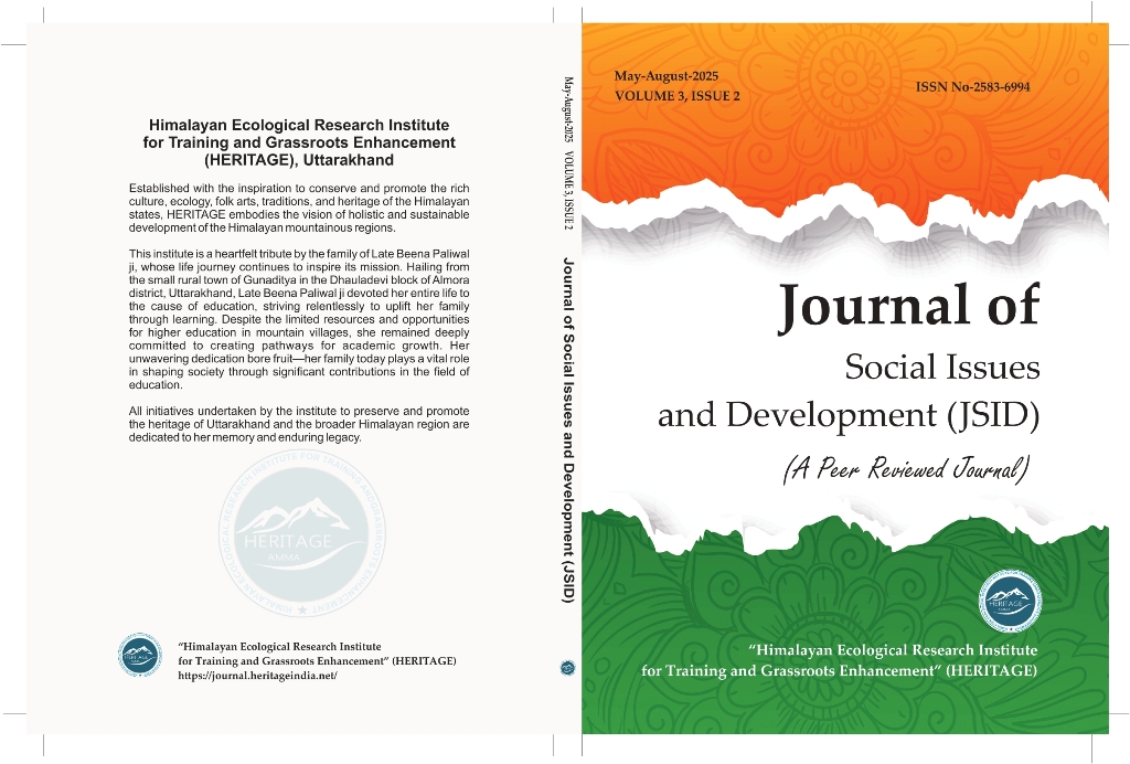 JSID was launched to give concrete shape to the vision and mission of the HIMALAYAN ECOLOGICAL RESEARCH INSTITUTE FOR TRAINING AND GRASS ROOTS ENHANCEMENT. The journal provides an open forum for publication of quality research work in Hindi and English Language. JSID is a peer reviewed inter-disciplinary journal which is published both in English and Hindi Language.